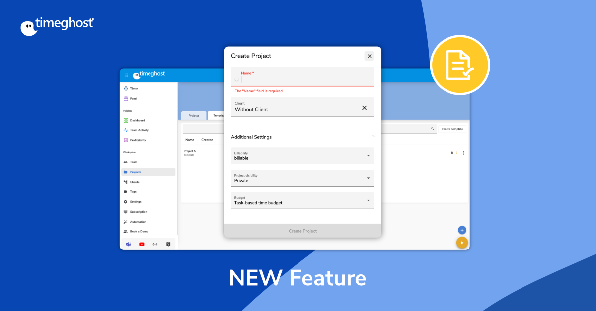 We have released a new timeghost release yesterday, which finally includes the much awaited project template feature